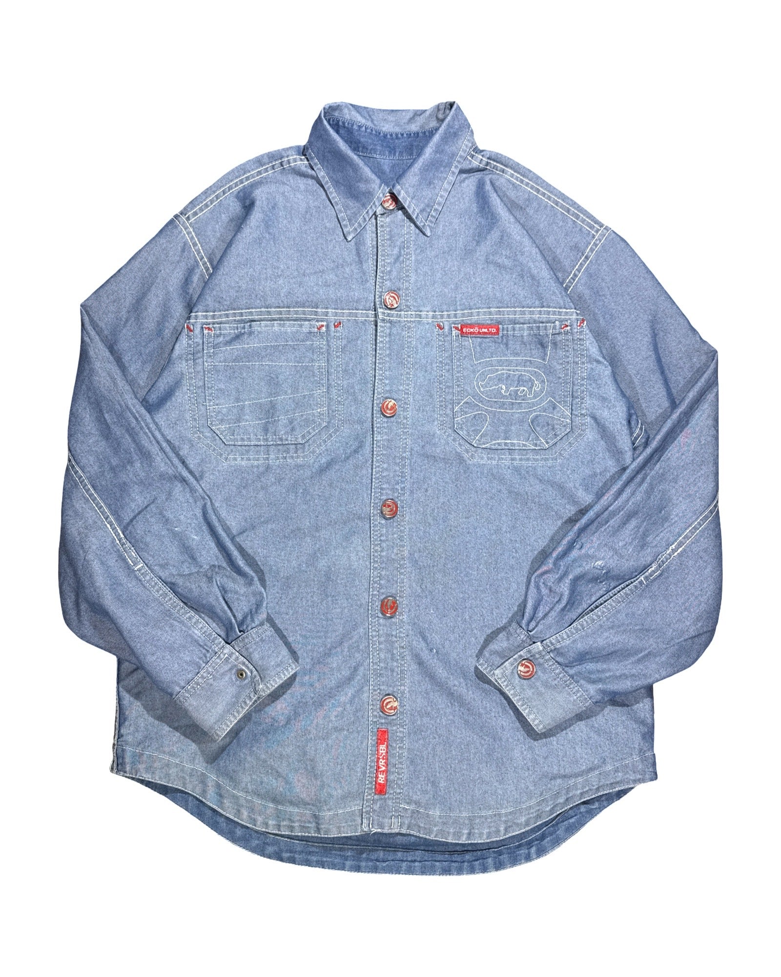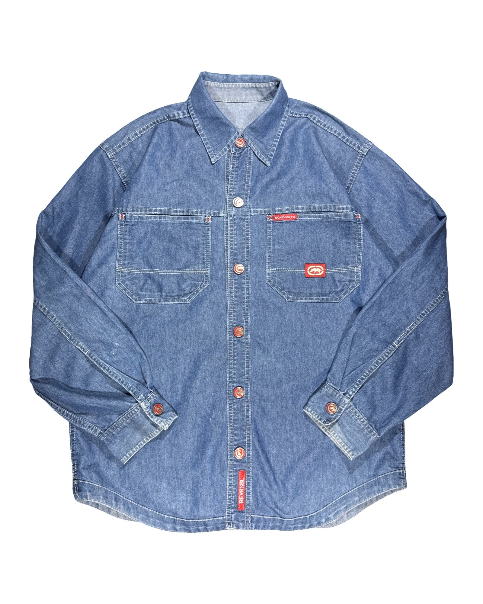 Vintage Ecko reversible shirt, one side blue denim other shiny denim